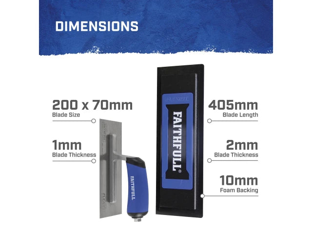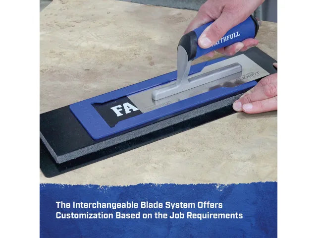 Construction: The FAIPFLEXMAS Flexi Master Trowel, designed to work seamlessly with the FlexiFit blade system, is made from high-grade stainless steel with an aluminium shank riveted to the blade for enhanced strength and durability.
