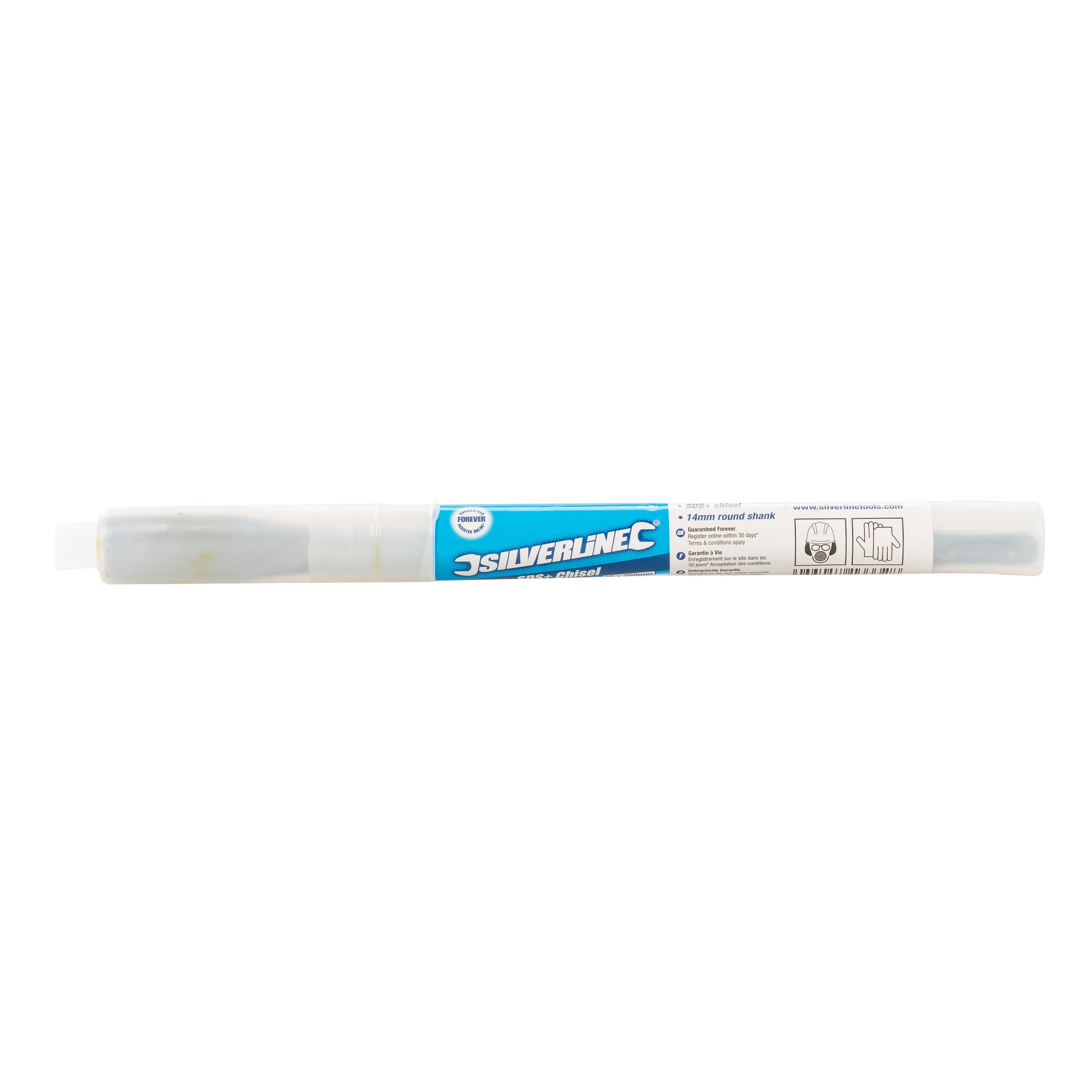 Hardened drop forged steel SDS Plus chisel with shot blast finish. Can be used on all masonry, stone, brick and concrete. 14mm round shank. Compatible with all SDS Plus machines including Silverline and GMC.